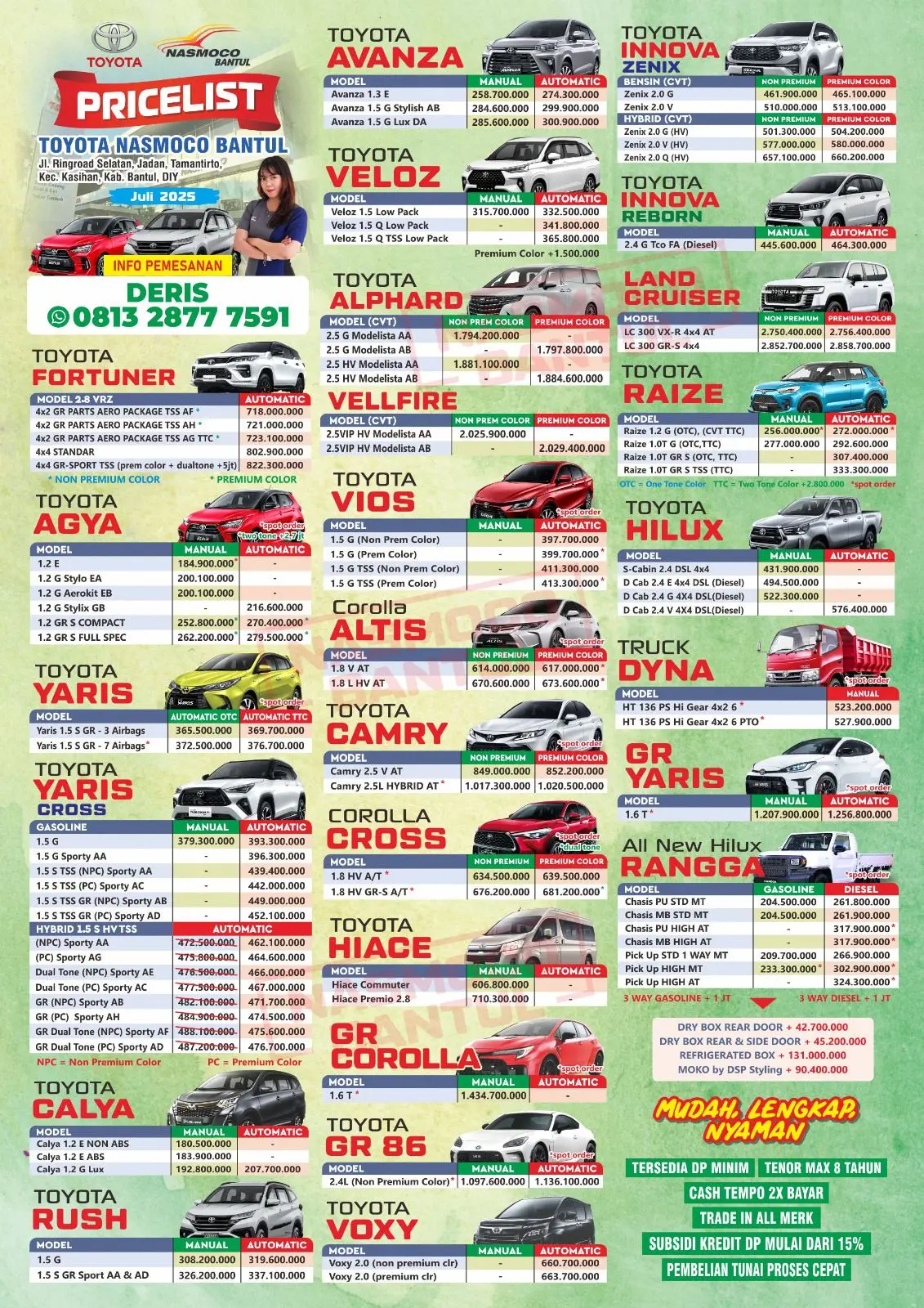Nikmati berbagai penawaran menarik dan promo eksklusif untuk setiap pembelian kendaraan Toyota di Deris Toyota Jogja. Syarat dan ketentuan berlaku.